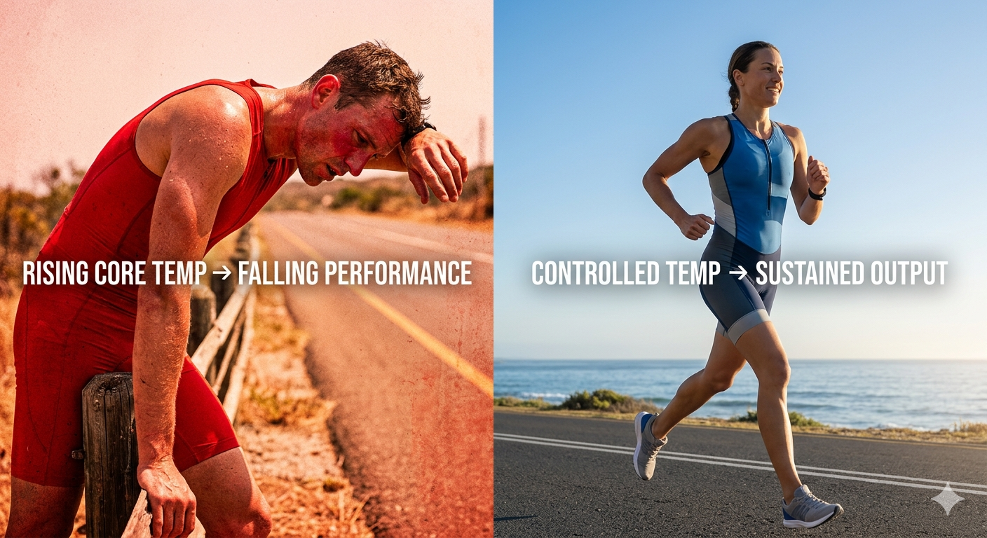 As winter fades and racing season approaches, one performance variable quietly dictates outcomes for triathletes who aren't ready for it: heat. Not fitness. Not equipment. Not even pacing. If your body hasn't learned to manage thermal strain, race-day heat will cap your performance regardless of how well-trained you are.